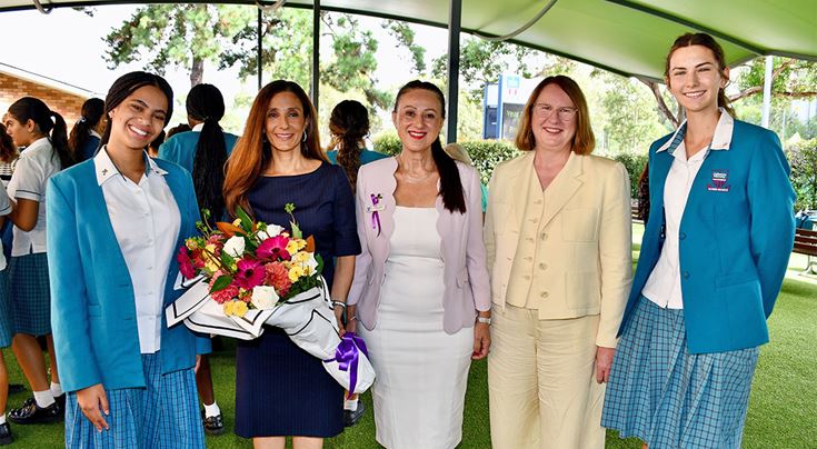 The school held a special International Women’s Day Assembly on Wednesday this week with special guests Class of 1992 student Melissa Doueihi, Head of Strategy and Innovation, Endeavour Energy; Donna Davis MP, Member for Parramatta; Sr Sally Bradley RSM, Parramatta Sisters of Mercy and Executive Director of Mercy Works; Sr Patricia Bolster RSM, Parramatta Sisters of Mercy Congregational Vicar; and Year 11 mothers and grandmothers.